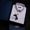 • Our shirt is a masterpiece of design and innovation, featuring a soft super-rolled button-down collar for a sophisticated touch. The contemporary silhouette elevates the wearer to sartorial splendour, complemented by specially designed boat-shaped cuffs and a matching cut at the bottom. Meticulously crafted with years of research, this shirt is a symbol of modern elegance, blending style and grace seamlessly.